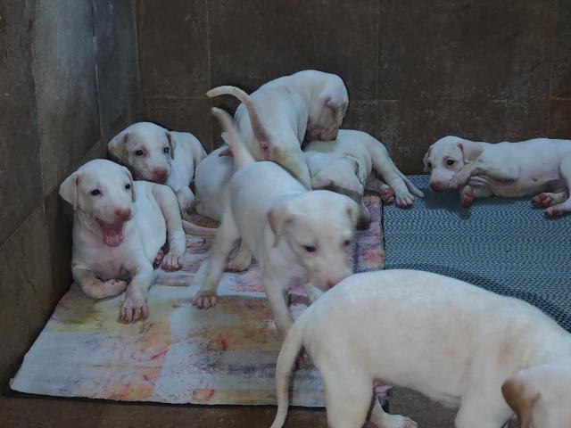 Our dog's first litter of 8 heavy built, healthy Rajapalayam pups are for sale.We have 4 Male and 4 female pups.39 days of age.Excellent quality with strong features.